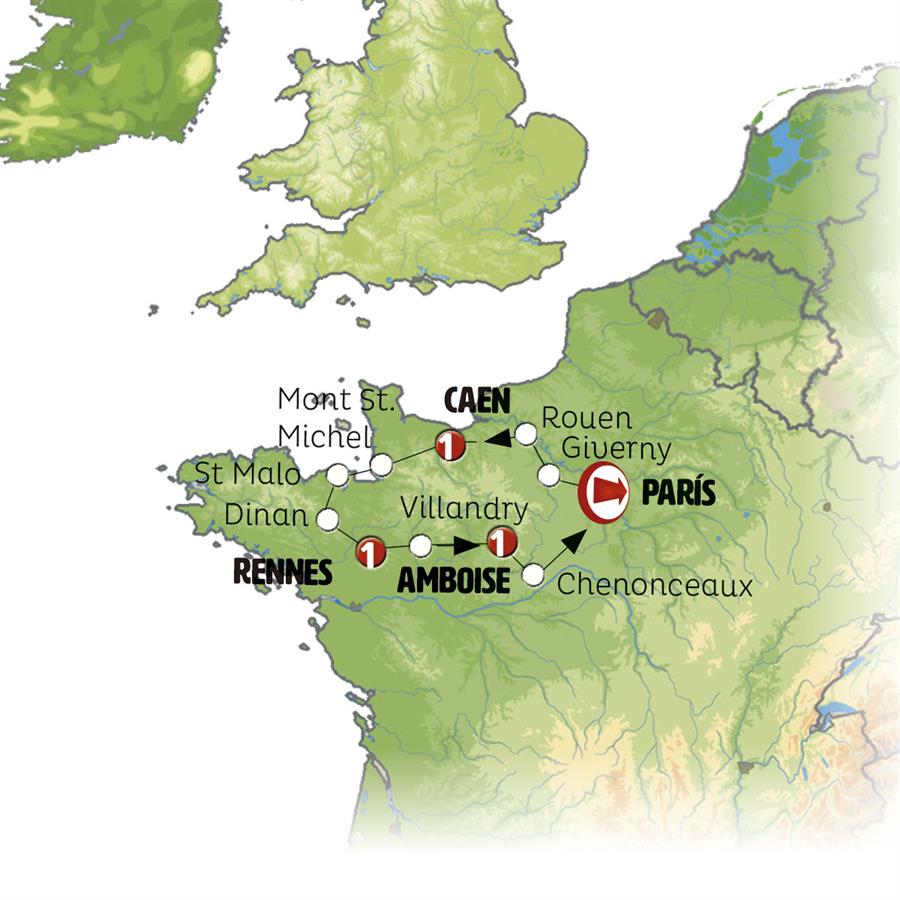 PARIS, ROUEN, ARROMANCHES, CAEN, MONT SAINT MICHEL, FOUGERES, CHARTRES