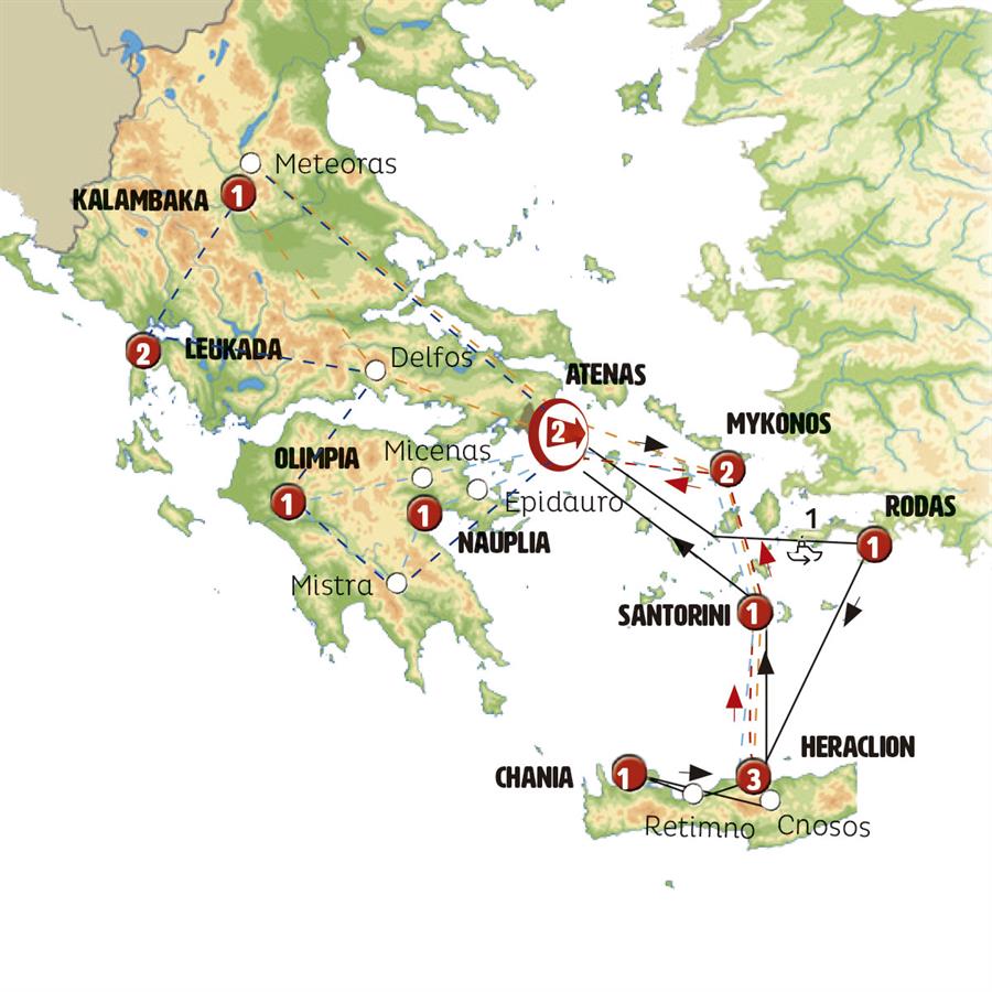 ATENAS, FERRI ATENAS RODAS, RODAS, HERACLION, SANTORINI, MICONOS