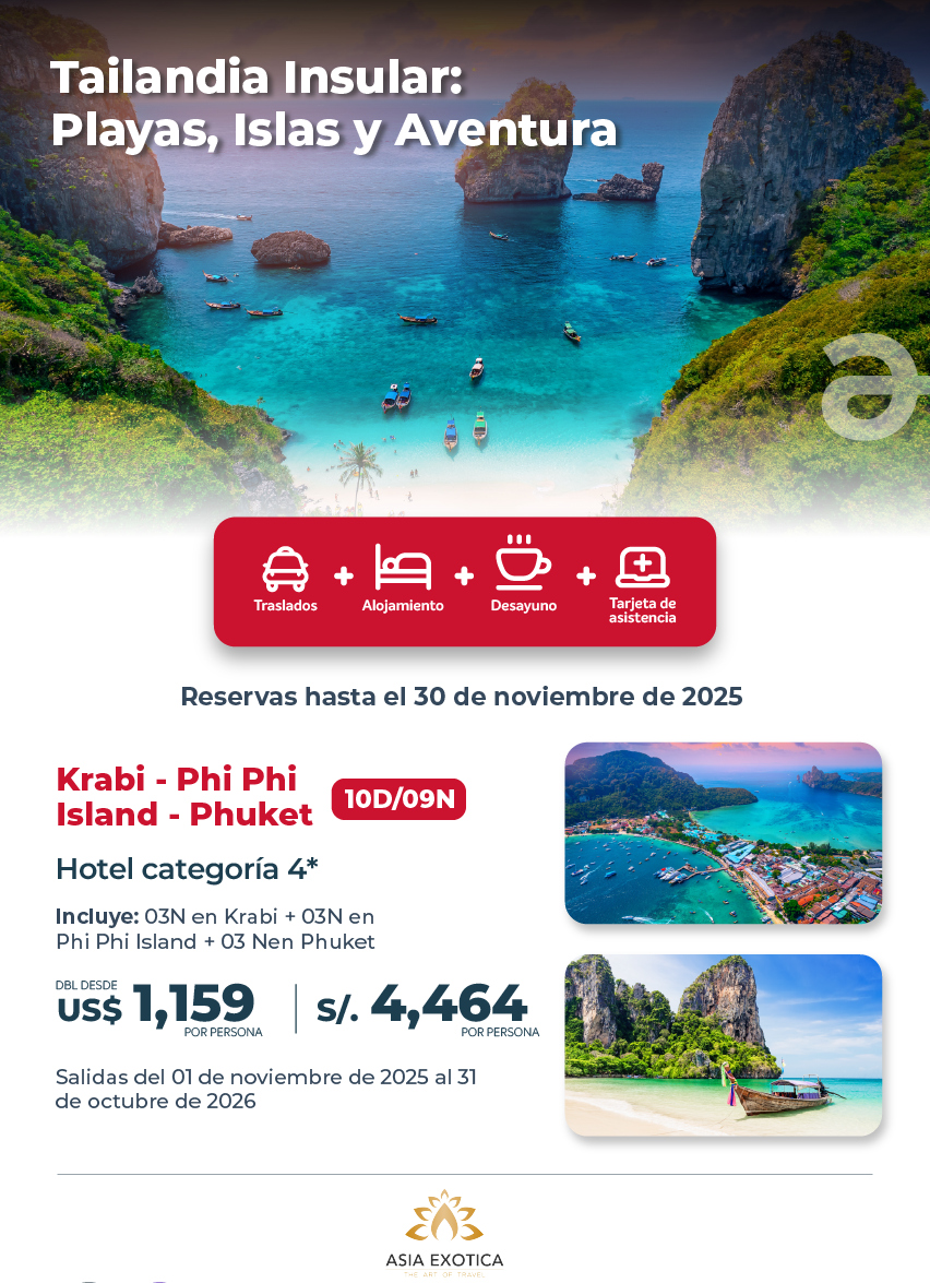 Descubre la belleza del sur de Tailandia con nuestro programa Krabi, Phi Phi Island y Phuket, un recorrido diseñado para quienes buscan playas paradisíacas, paisajes exóticos y diversión en un solo viaje.